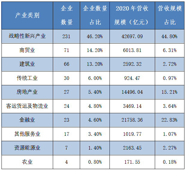 (2021深圳500强各行业企业数量及营业收入情况一览表)